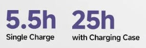 Durata della batteria: 5,5h (auricolare), 25h con custodia di ricarica