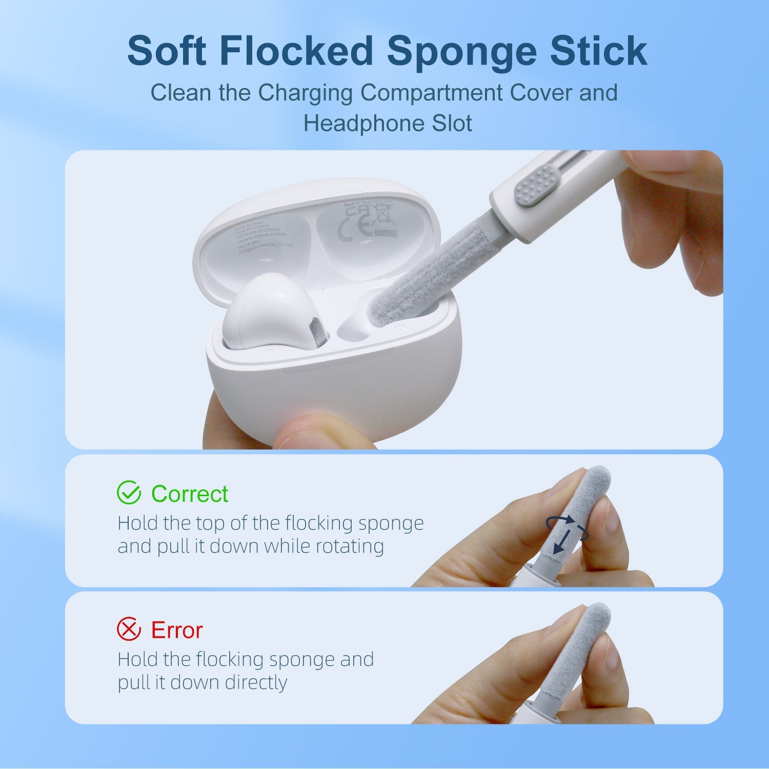 Penna per la pulizia degli auricolari con doppia punta retrattile
